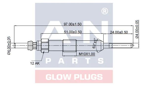 RENAULT свічка розжарювання (подвійна спіраль) 4.4V Kangoo,Megane 1,5dCi 09-,Dacis Logan 1,5dCi 10-,Nissan A-N Parts A-N096 032