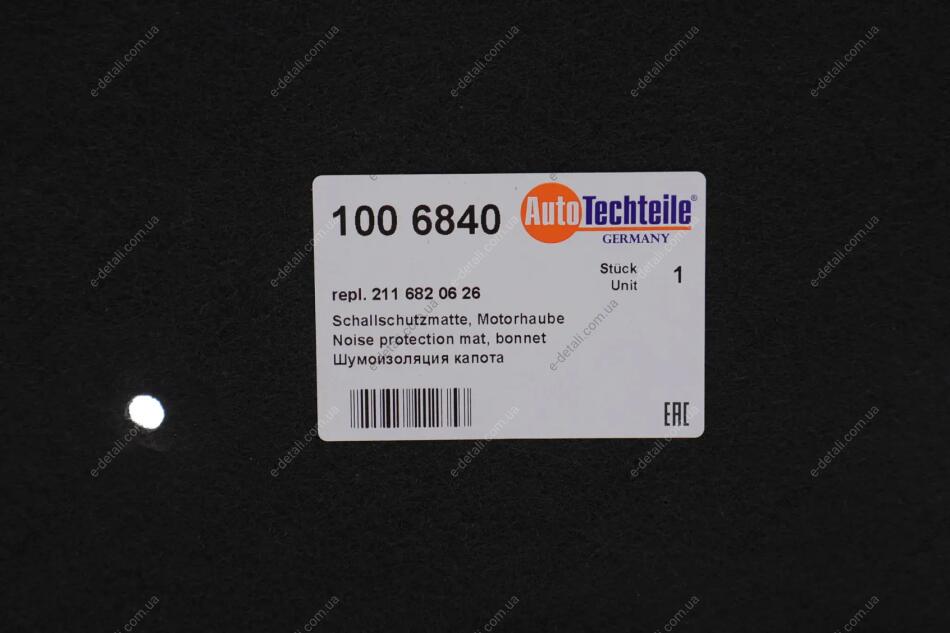 Шумоізоляційна панель капота, матеріал flannel AUTOTECHTEILE 100 6840