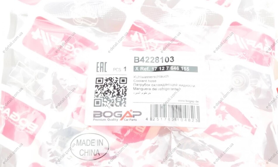 Патрубок радиатора BMW X3 (F25)/X4 (F26)10-18 BOGAP B4228103