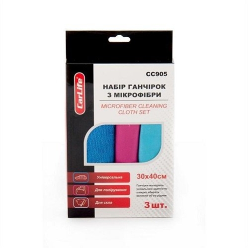 Салфетка универсальная микрофибра (к-т 3шт) CarLife CC905
