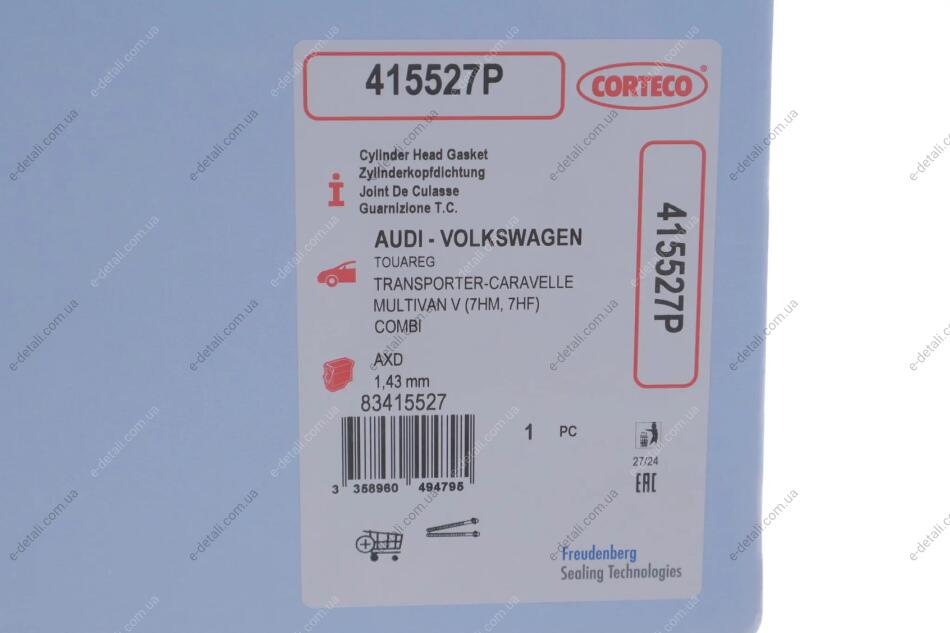 Прокладка головки блоку циліндрів CORTECO 415527P