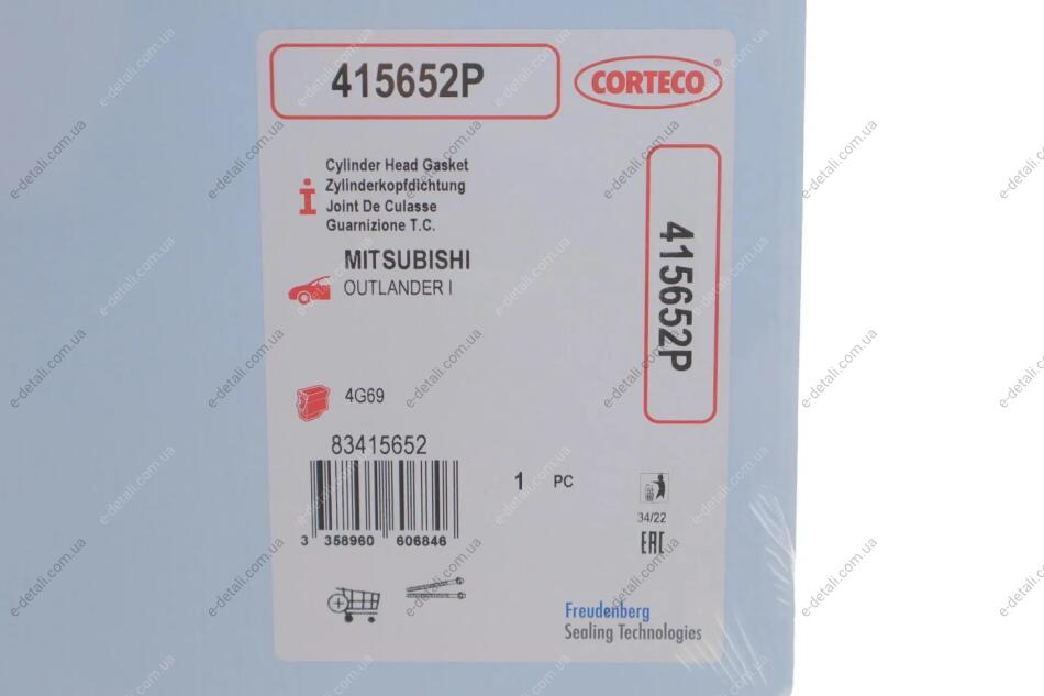 Прокладка головки блоку циліндрів CORTECO 415652P