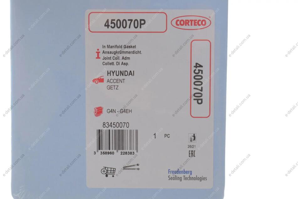 Прокладка впускного колектора CORTECO 450070P