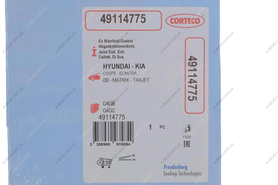 HYUNDAI прокладка випускного колектора ELANTRA, TUCSON, i30, KIA CEED, CERATO 04- CORTECO 49114775
