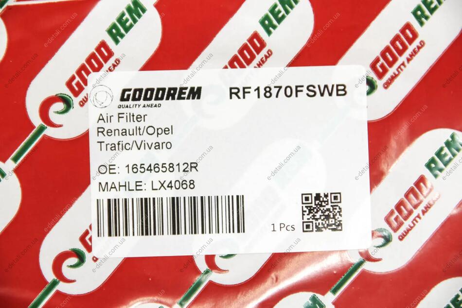 Фільтр повітряний Trafic/Vivaro 1.6dCi 14- (з сіткою і передфільтром) GOODREM RF1870FSWB