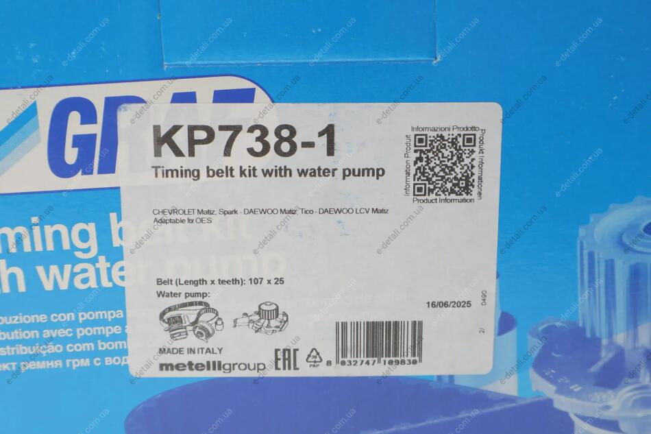 Комплект ГРМ з помпою води GRAF KP738-1