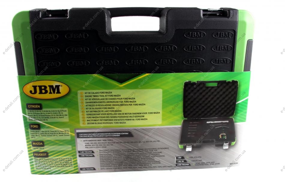 JBM є провідним іспанським брендом в області пневмо-, ручних інструментів та діагностичного обладнання автомобільної промисловості. Спеціальний департамент JBM працює виключно як постачальник оригінального автомобільного ринку з провідними європейськими автовиробниками. Який задовольняє потребам як автомобільної, так і промислової індустрії.