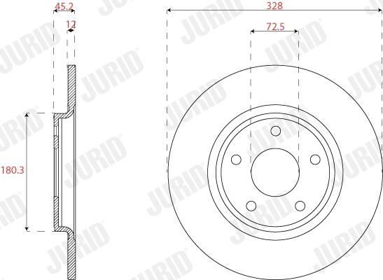 DODGE гальмівний диск задній JOURNEY 2.4 08-, FIAT FREEMONT 11- Jurid 563315JC