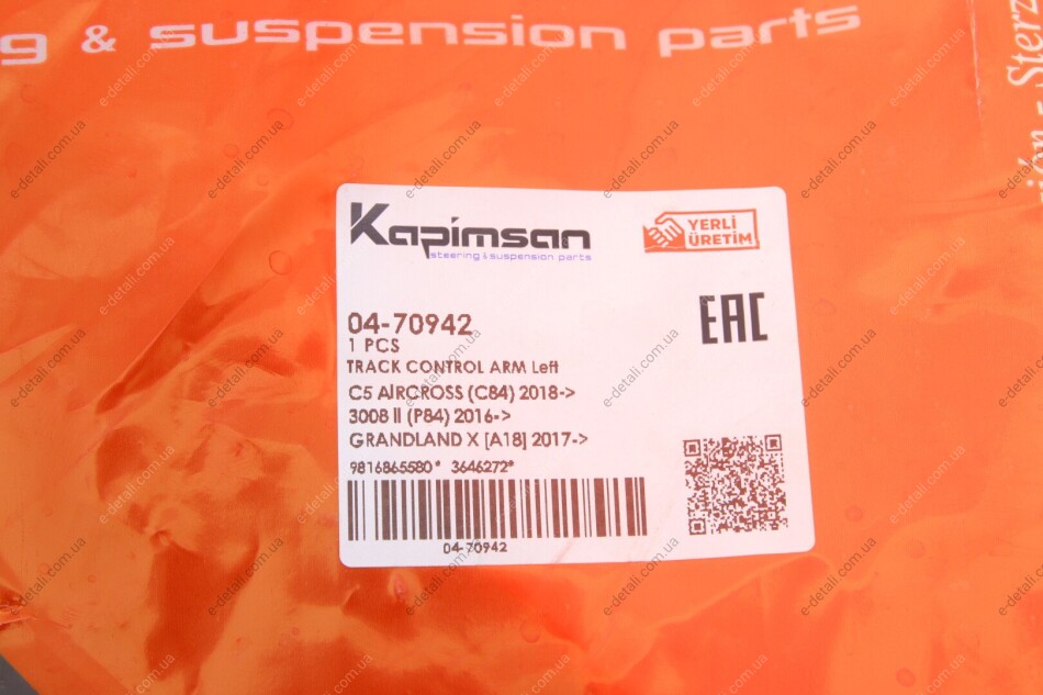 Рычаг подвески (передний/снизу) (L) Citroen C5 Aircross 18-/Peugeot 3008 II/5008 II 16- d=16.6/21.9 KAPIMSAN 04-70942