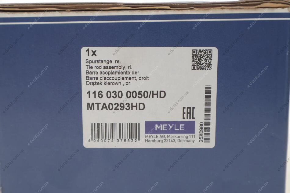 Поперечна кермова тяга MEYLE 116 030 0050/HD