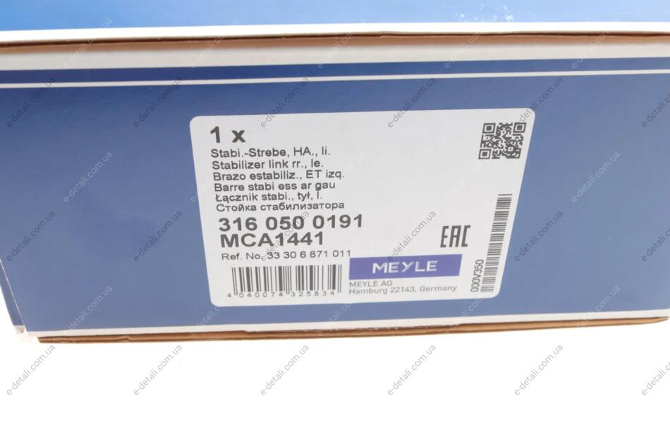 Рычаг подвески (задний/сзади/сверху/посередине) (L) BMW X3 (G01/F97)/X4 (G02/F98) 18- (L=296mm) MEYLE 316 050 0191
