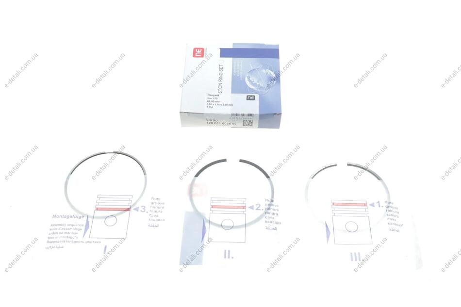 Кольца поршневые Volvo S60/S80/V60/V90/XC40/XC60/XC70/XC90 2.0D 13- (82.00mm/STD) (2-1.75-2) NPR 120 051 0025 00