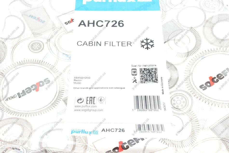 Аналоги                            "AHC726 Purflux":
