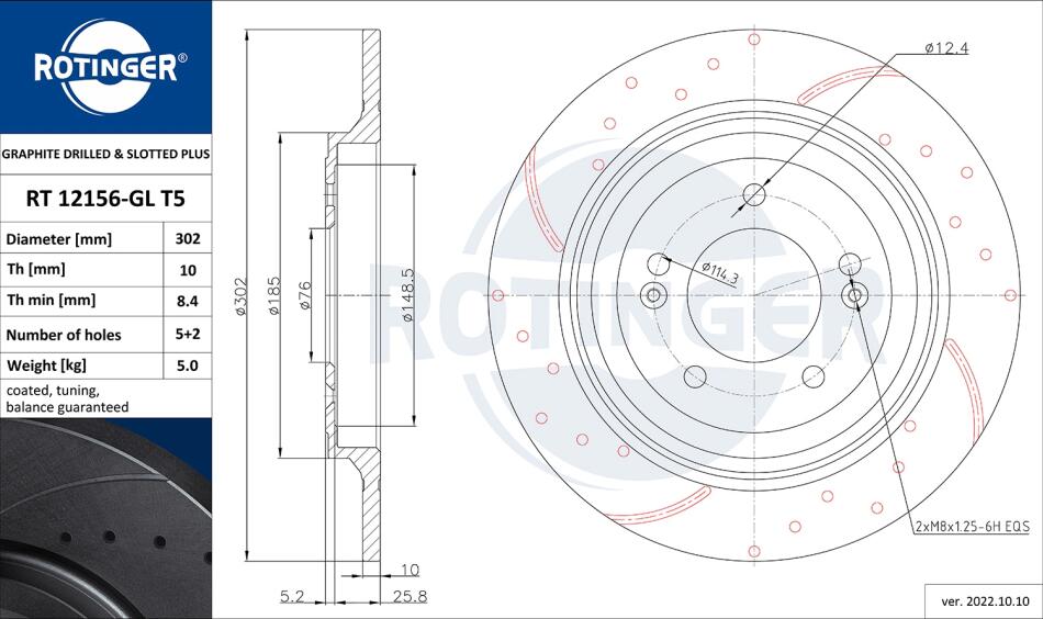 Диск тормозной задний (кратно 2) HYUNDAI TUCSON (15-)/ KIA SPORTAGE IV [302X31 п ROTINGER RT12156GLT5