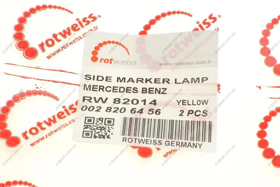 Фонарь боковой (габарит) MB Sprinter/VW LT 96-06 (желтый) LED (0028206456) ROTWEISS RW82014-Y