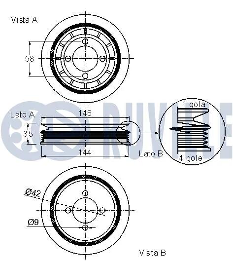OPEL Шків карданого валу Astra G 1,7TD 98-, Zafira 2,0TDI -05 RUVILLE 520263