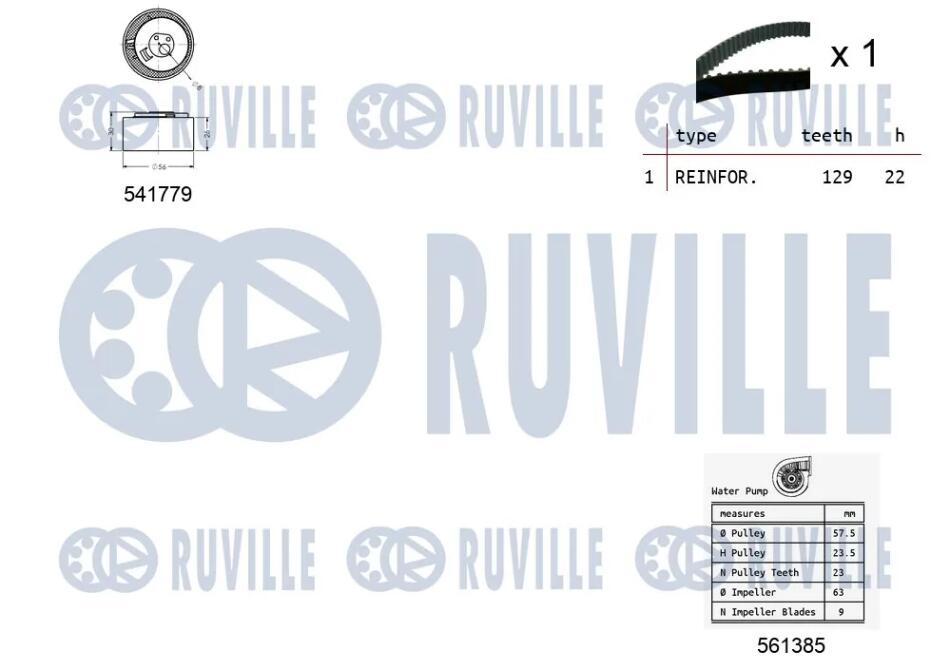FIAТ К-кт. ГРМ (помпа+рем.+ ролик) Doblo 1.2, 1,4 RUVILLE 5502642