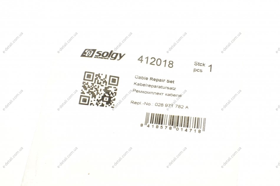 Ремкомплект кабеля свечи накаливания VW Caddy II 1.9 TDI/LT 2.8 TDI 94-10 Solgy 412018
