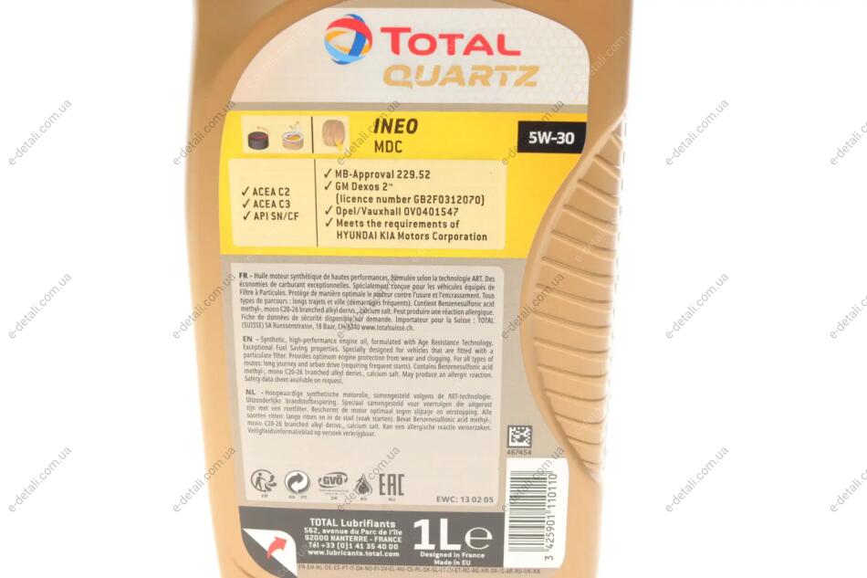 Масло 5W30 Quarts INEO MDC (1L) MB 229.52 TOTAL 214030