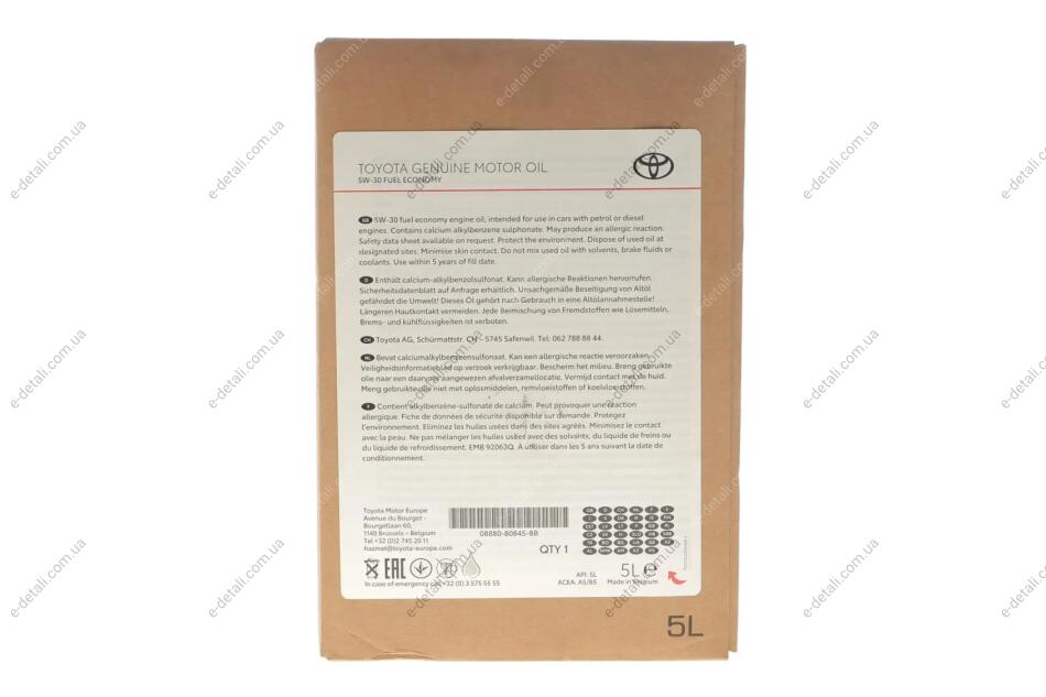Олива моторна SAE 5W30 (5 Liter) TOYOTA 08880-80845-BB