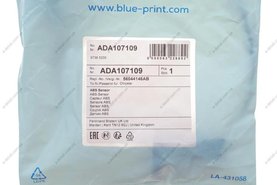 JEEP датчик ABS задн.Grand Cherokee III -10 BLUE PRINT ADA107109
