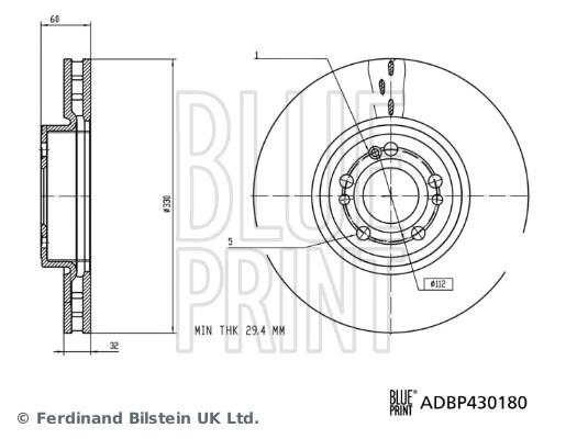Диск гальмівний MERCEDES GLE (V167) 2.0D 10.18-03.23 BLUE PRINT ADBP430180