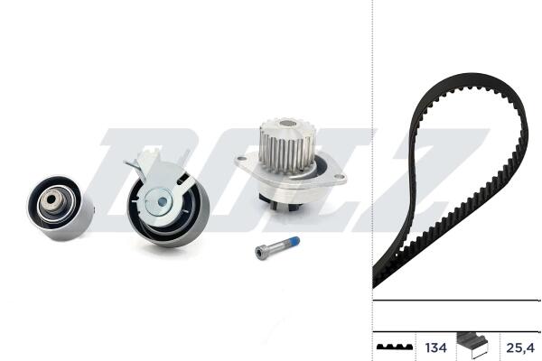 CITROEN К-т ГРМ (помпа + ремень + 2 ролика + крепеж) C3 I 1.6 02-10, PEUGEOT 106 II 1.6 96-04, 307 1.6 02-08 DOLZ KD042