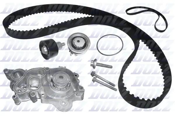 VW К-кт ГРМ (помпа+2 ролика+2 ремня+ крепление) Audi A1/3/4/5,Caddy IV,Golf VI,VII,Passat,Tiguan,Touram 1.2/1.4TFSI DOLZ KD150