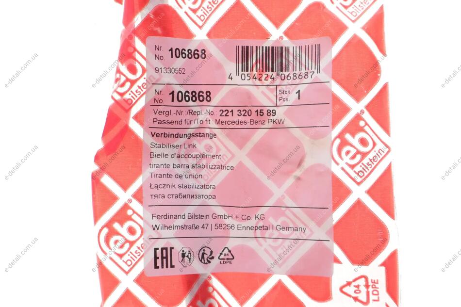Кронштейн(тяга) стабілізатора з гайками FEBI BILSTEIN 106868