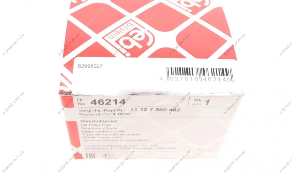 Кришка горловини маслозаливної BMW 3 (E90/E91)/5 (E60/E61)/7 (E65/F01) 2.3-3.5/2.0d 04-17 FEBI BILSTEIN 46214