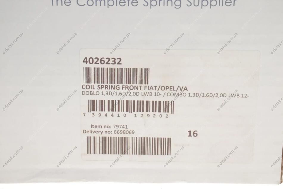 Пружина (передня) Fiat Doblo 1.3-2.0D Multijet 10-/Opel Combo 1.3-2.0CDTI 12- (фург.(довг.кол.база) LESJOFORS 4026232