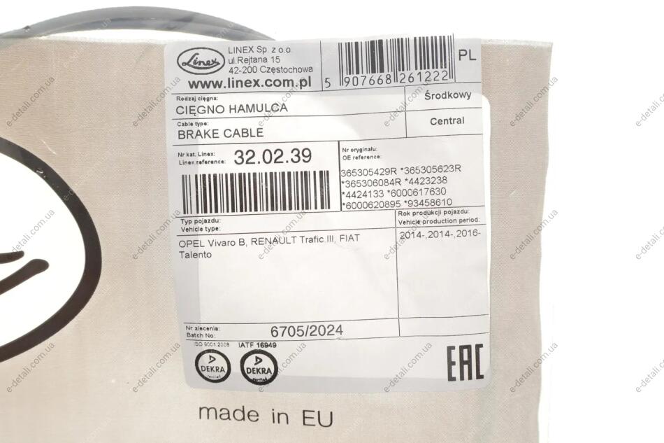 Трос ручного гальма LINEX 32.02.39