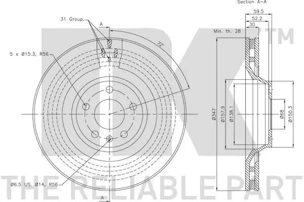 Мінімальна товщина [мм]: 28.0