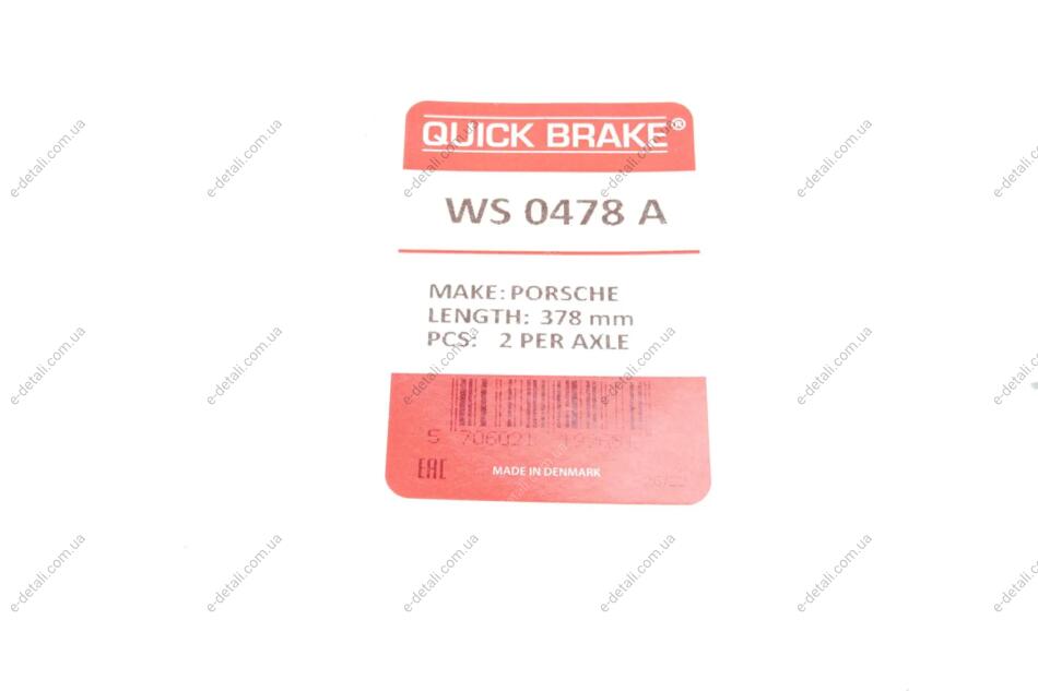 Датчик зносу гальмівних колодок (передніх) Porsche Cayenne/Cayenne Coupe 17- (L=378mm) (К-кт 2 шт.) QUICK BRAKE WS 0478 A